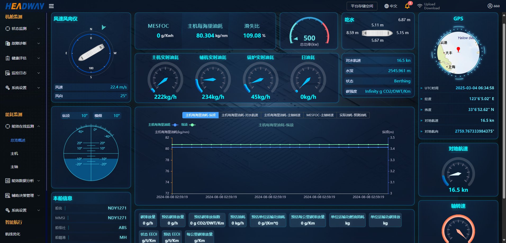 基于智能信息集成平臺,實時監(jiān)測船舶航行各個關(guān)鍵指標,運用現(xiàn)代化船舶能效管理的系統(tǒng)性方法,對船舶能源消耗、能源利用效率和二氧化碳排放進行嚴格的控制和管理,提高船舶能效,減少設(shè)備自身或人為因素造成的額外消耗,實現(xiàn)船舶節(jié)能減排的能效要求,推動航運綠色發(fā)展。
